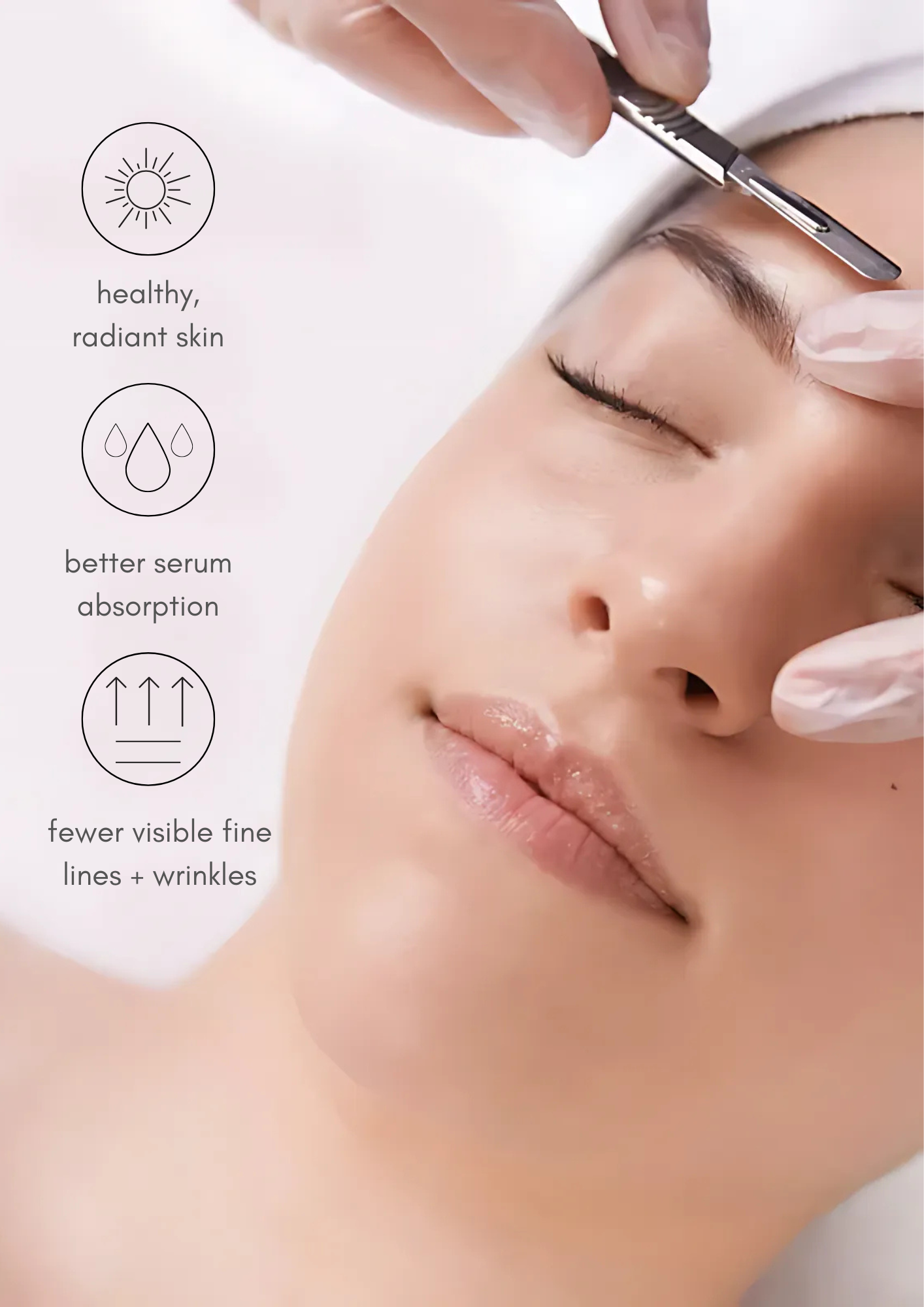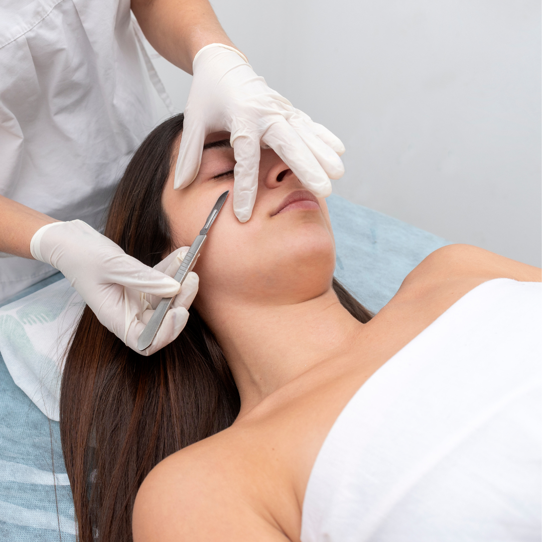 Dermaplaning is a very effective, non-invasive exfoliating facial making the face feel smooth and very clean. A round edged scalpel, specially manufactured for dermaplaning, is angled skilfully to glide over the skin to remove both dead skin build-up and fine facial hair. This process ultimately exfoliates, brightens and smooths the skin.