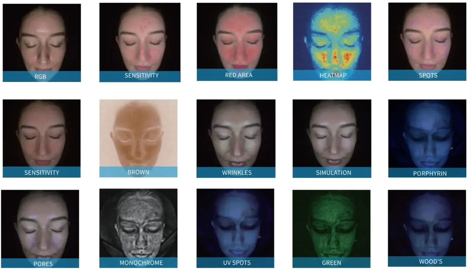 The process starts with high-quality imaging. Different light modes (sometimes called “multi-spectrum imaging”) are used to take pictures of your skin. These don’t just show what your skin looks like on the surface — they reveal what’s going on beneath.
