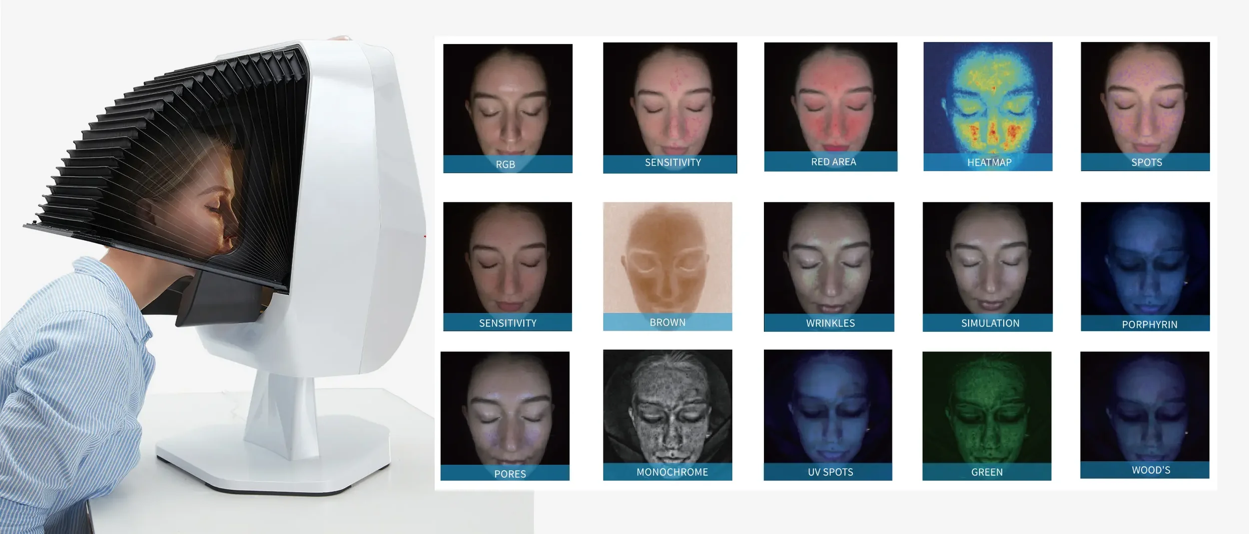 The process starts with high-quality imaging. Different light modes (sometimes called “multi-spectrum imaging”) are used to take pictures of your skin. These don’t just show what your skin looks like on the surface — they reveal what’s going on beneath.